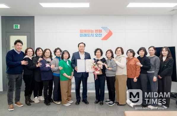 미담타임스 정주환 기자 | 오산시는 지난 9일, 제15기 국민추천포상에서 국무총리 표창을 수상한 ‘이스트 봉사단’에 상장을 전달하고 봉사자들을 격려했다고 밝혔다. 이스트 봉사단은 앞서 지난 1월 2일 청와대 영빈관에서 열린 시상식에서 국무총리 표창을 수상한 바 있다.