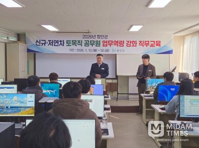 미담타임스 김교환 기자 | 함안군은 신규 및 저연차 시설(토목)직 공무원의 실무 역량을 높이기 위해 8급 및 9급 시설(토목)직 공무원을 대상으로 12일부터 30일까지 3주간 직무교육을 실시한다고 12일 밝혔다.