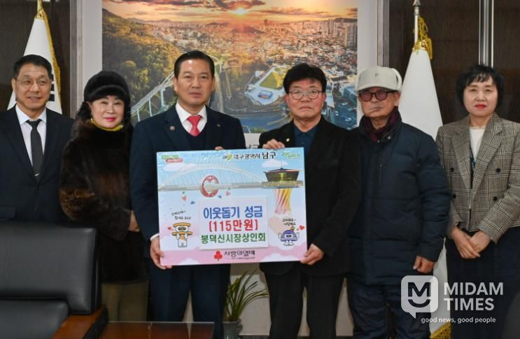 미담타임스 김교환 기자 | 대구 남구는 지난 7일 봉덕신시장 상인회(회장 함광식)에서 성금 115만원을 기탁했다고 밝혔다.