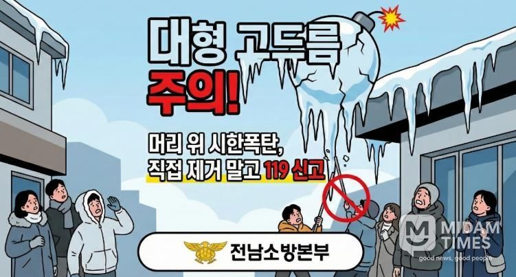 미담타임스 정인화 기자 | 전남소방본부는 12일, 최근 기온 급강하와 상승이 반복되면서 도심 건물과 주택 처마 등에 생긴 대형 고드름으로 인한 안전사고 주의를 당부했다.