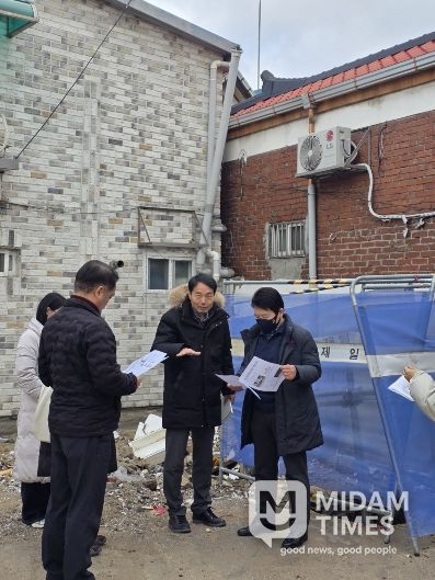 미담타임스 정주환 기자 | 강북구의회 노윤상 의원(국민의힘 대표의원, 삼양동·송천동·삼각산동)은 지난 12월 24일, 재조성 공사가 진행 중인 솔샘길경로당(솔샘로 277-1) 송천동 현장을 방문해 공사 진행 상황을 점검하고 관계 부서와 향후 대책을 논의했다.