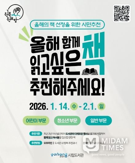 미담타임스 김준완 기자 | 포항시는 ‘2026년 포항시 올해의 책’을 선정하기 위해 오는 14일부터 내달 1일까지 후보 도서를 추천받는다.