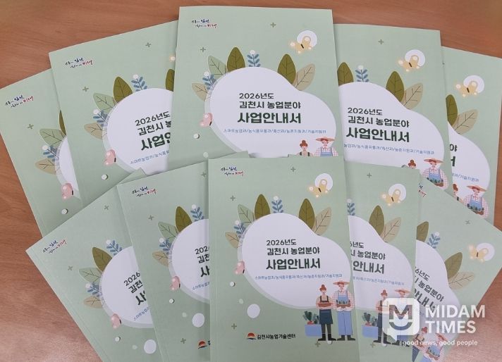 미담타임스 김준완 기자 | 김천시는 2026년도 김천시농업기술센터에서 추진하는 농업분야 지원사업의 사업내용과 신청정보를 담은 ‘2026년도 김천시 농업분야 사업안내서’를 제작하여 읍면동 행정복지센터 및 지역농협에 배포했다고 12일 밝혔다.