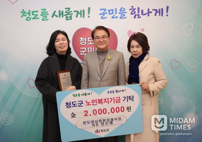 김하수 청도군수는 “지속적인 기탁과 관심으로 노인복지기금에 힘을 보태주신 데 깊이 감사드린다”며 “군민 여러분의 따뜻한 참여가 어르신들의 복지 향상에 큰 밑거름이 되는 만큼, 앞으로도 더 많은 어르신들에게 실질적인 도움이 될 수 있도록 최선을 다하겠다”고 밝혔다.