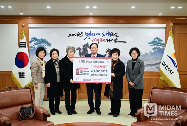 미담타임스 김준완 기자 | 김천시는 지난 7일, 김천시 전직 여성 단체장 모임으로부터 희망2026나눔캠페인 성금 100만 원을 전달받았다고 밝혔다.