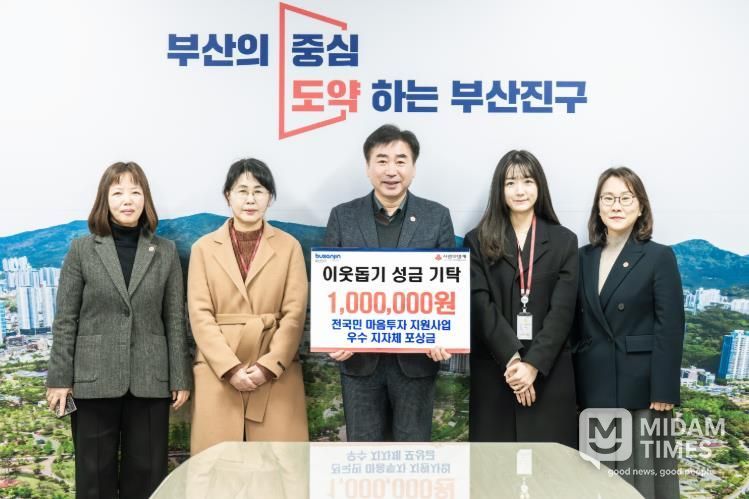 미담타임스 김교환 기자 | 부산진구는 지방자치단체 전국민 마음투자 지원사업 우수기관 선정에 따른 포상금을 지역 이웃돕기 성금 100만원을 기탁했다.