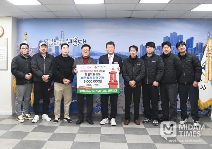 미담타임스 김교환 기자 | (주)희망환경은 지난 7일 해운대구에 어려운 이웃을 돕기 위한 성금 500만 원을 기탁했다.