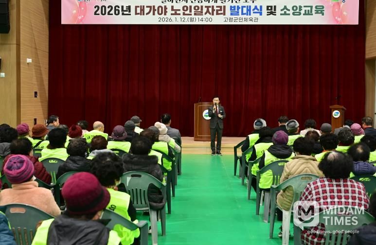 미담타임스 김준완 기자 | 대가야읍은 2026. 1. 12. 2026년 노인일자리 참여자 등 350명을 대상으로 고령군민체육관에서 노인일자리 발대식 및 안전교육을 실시했다.