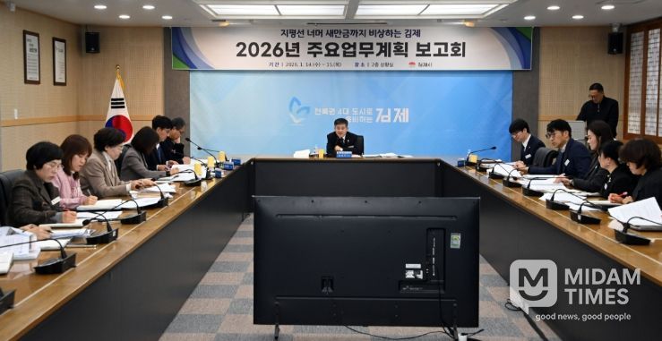 미담타임스 정인화 기자 | 김제시는 지난 14일부터 15일까지 2일간 정성주 시장 주재로‘2026년 주요업무계획 보고회’를 개최했다고 밝혔다.