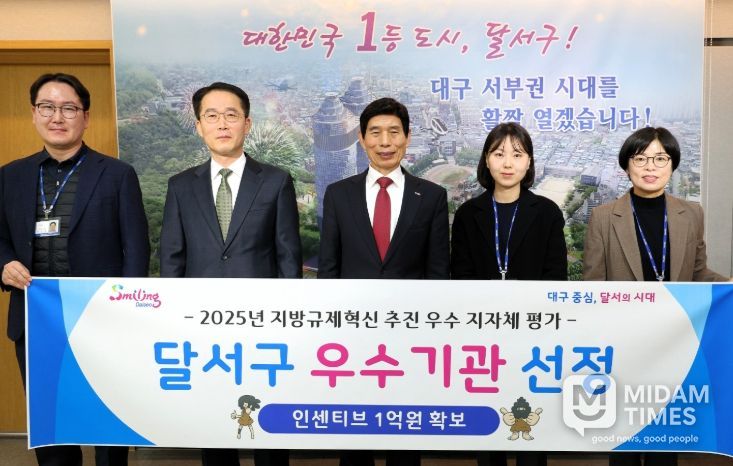 미담타임스 김교환 기자 | 대구 달서구는 행정안전부가 주관한 ‘2025년 지방규제혁신 추진 성과평가’에서 우수 지자체로 선정돼 재정 인센티브인 특별교부세 1억 원을 확보했다고 15일 밝혔다.