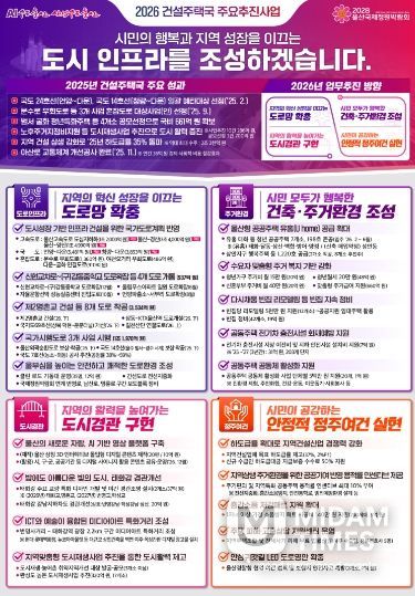 이를 위해 ▲지역 혁신 성장을 이끄는 도로망 확충 ▲시민 모두가 행복한 건축·주거환경 조성 ▲지역 활력을 높이는 도시경관 구현 ▲시민이 공감하는 안정적 정주여건 실현을 2026년 핵심 추진 방향으로 설정했다.