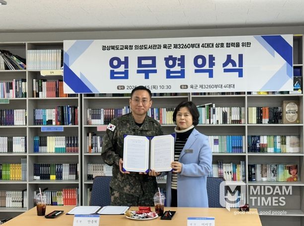 미담타임스 김준완 기자 | 경상북도교육청 의성도서관은 1월 15일 육군 제3260부대 4대대, 의성군 가족센터와 각각 지역 독서문화 활성화를 위한 업무협약식을 체결했다고 밝혔다.