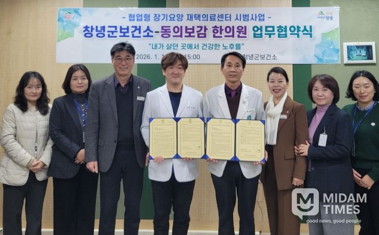 미담타임스 김교환 기자 | 창녕군은 지난 14일 동의보감 한의원과 장기요양 재택의료센터 시범사업 운영을 위한 업무협약(MOU)을 체결하고, 지역 내 의료 취약계층을 대상으로 한 재택의료 서비스를 본격 추진한다고 밝혔다.