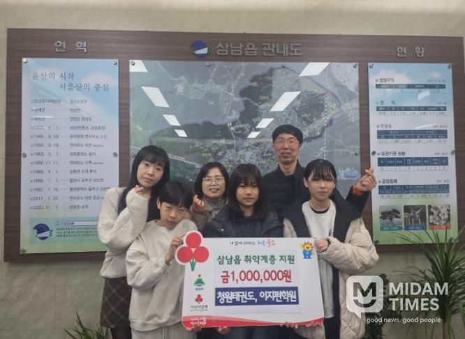 미담타임스 김준완 기자 | 울주군 삼남읍에 소재한 청원태권도와 이지펀학원이 16일 삼남읍 행정복지센터에 지역 저소득층을 위한 성금 100만원을 기탁했다.
