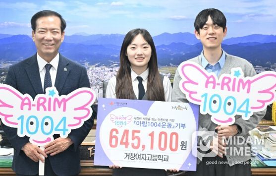 또한, 거창여자고등학교(교장 박기석)는 학생들이 교내 그린카페 활동으로 마련한 수익금을 지역사회에 환원하고자 아림1004운동에 동참했으며 “기후위기 대응을 위한 방안으로 시작된 그린카페 운영 수익금을 아림1004운동에 기부함으로써 학생들이 나눔의 의미를 배우고 지역사회에 기여할 수 있어 기쁘게 생각한다”며 기부의 의미를 전했다.