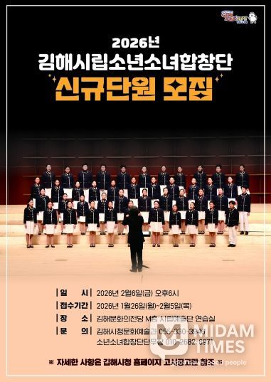 미담타임스 김교환 기자 | 김해시는 2026년부터 활동할 김해시립소년소녀합창단의 신입 단원을 모집한다고 19일 밝혔다.