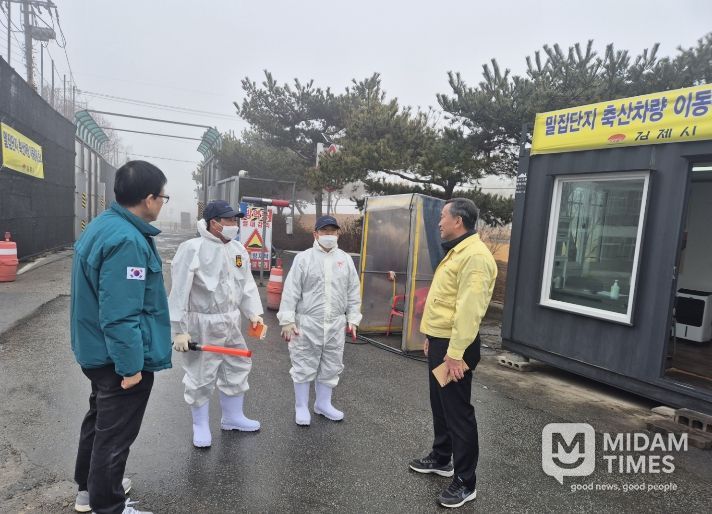 미담타임스 김준완 기자 | 김제시 농업기술센터는 지난 16일 방역 최일선인 용지 산란계 밀집단지‘거점소독시설, 통제초소, 알 환적장’을 방문해 조류인플루엔자(AI) 확산 차단을 위한 차량 및 대인 소독 상황과 소독시설의 정상 작동 여부 등 방역상황을 점검하고 초소 현장 근무자들을 격려했다고 밝혔다.