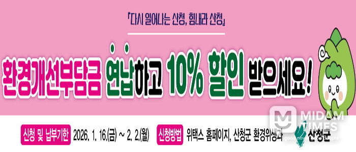 미담타임스 김교환 기자 | 산청군은 환경개선부담금 연납제를 운영한다고 19일 밝혔다.