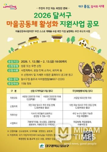미담타임스 김교환 기자 | 대구 달서구는 문화체육관광부가 주최하고 한국도서관문화재단이 주관하는 '2026년 작은도서관 순회사서 지원사업' 공모에 최종 선정됐다.