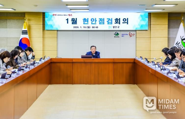 미담타임스 김교환 기자 | 함안군은 지난 19일 군청 3층 중회의실에서 1월 현안점검회의를 열고 도민 상생토크 준비 상황과 설 명절 공직기강 확립, 인사이동에 따른 업무연찬 강화, 산불 예방 대응체계 유지 등 주요 현안을 점검했다고 밝혔다.