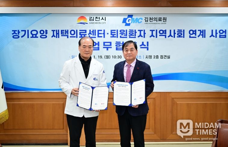 미담타임스 김준완 기자 | 김천시는 1월 19일 김천의료원과 함께 ‘장기요양 재택의료센터 시범사업’과 ‘퇴원환자 지역사회 연계 사업’ 추진을 위한 업무협약을 체결했다.