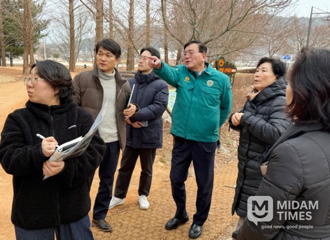 미담타임스 김준완 기자 | 울산광역시의회 홍성우 의원(산업건설위원회)은 19일 오전, 지역 주민 및 울산경제자유구역청 관계자들과 함께 울주군 삼남읍 교동리 맨발 산책로 일원을 방문해 현장 간담회를 가졌다.