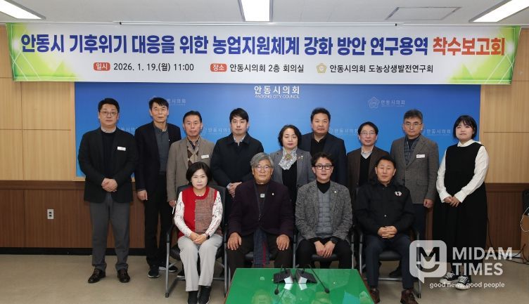 미담타임스 김준완 기자 | 안동시의회 의원연구단체 도농상생발전연구회(회장 김창현 의원)는 1월 19일, 의회 2층 회의실에서 '안동시 기후위기 대응을 위한 농업지원체계 강화 방안 연구 용역' 착수보고회를 개최했다.