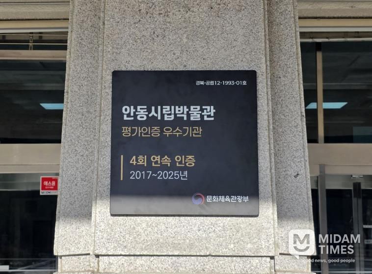 미담타임스 김준완 기자 | 안동시는 안동시립박물관이 문화체육관광부에서 실시한 ‘2025년 공립박물관 평가인증제’에서 4회 연속 평가인증 우수기관으로 선정되는 쾌거를 거뒀다고 1월 20일 밝혔다.