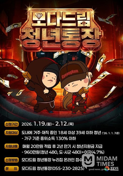 미담타임스 김교환 기자 | 김해시는 청년들의 자산 형성과 지역 정착을 돕는 '2026년 모다드림 청년통장 지원사업' 참여자를 모집한다고 20일 밝혔다.