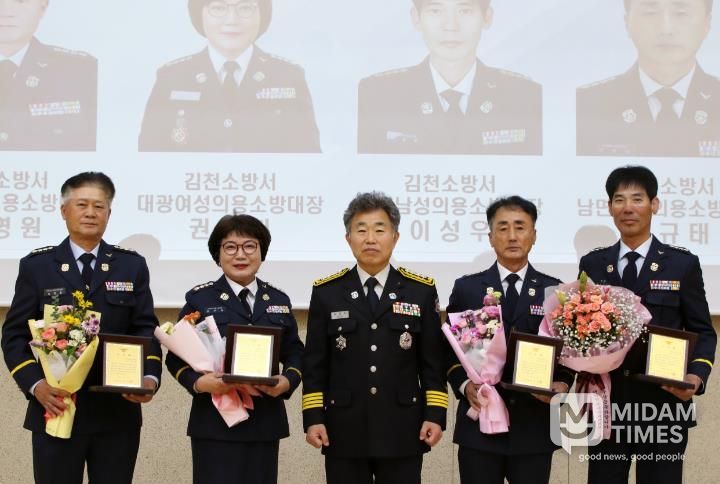 미담타임스 김준완 기자 | 김천소방서는 19일 대회의실에서 김천소방서 의용소방대 여성연합회장 임명장 및 퇴임 대장 공로패 수여식을 개최했다.