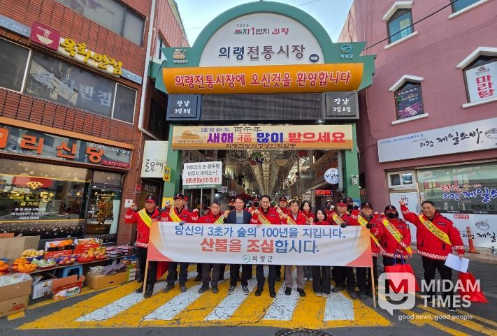 미담타임스 김교환 기자 | 의령군은 휴일이자 의령장날인 지난 18일 의령전통시장에서 표주업 부군수와 조희권 경제문화국장, 산림휴양과 직원 및 산불진화대원 등 30여 명이 참여한 가운데 산불예방 홍보 캠페인을 실시했다고 밝혔다.