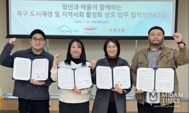 김은윤 북구 도시재생지원센터장은 “이번 3자 협약을 통해 청년과 주민이 함께 지역 문제를 고민하고 해결하는 과정을 도시재생 현장에서 실천해 나가며, 사람 중심의 도시재생이 정착될 수 있도록 적극 지원하겠다”고 밝혔다.