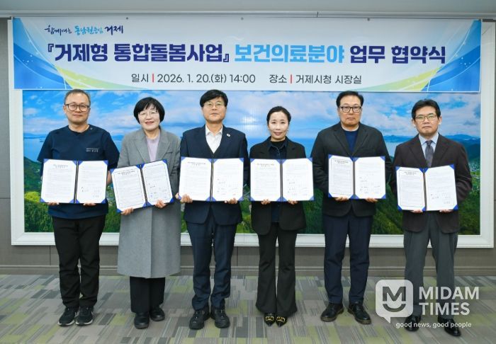 미담타임스 김교환 기자 | 거제시는 지난 20일, 시장실에서 관내 의료기관 및 거제시약사회와 함께 '거제형 통합돌봄사업' 보건의료분야 업무 협약을 체결하고, 민관 협력 기반의 의료·돌봄 통합지원 체계 구축을 본격화했다고 밝혔다.