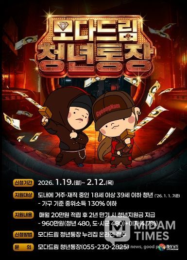 미담타임스 김교환 기자 | 거제시은 청년들의 자산 형성을 지원해 경제적 자립 기반을 마련하고 장기 재직과 지역 정착을 유도하기 위해 '2026년 모다드림 청년통장 지원사업'상반기 참여자(43명)를 1월 19일부터 2월 12일까지 모집한다.