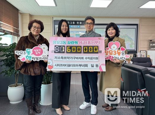 미담타임스 김교환 기자 | 김해시 장유3동행정복지센터는 20일 김해율하시티프라디움 다도아 부녀회(회장 김영주)에서 관내 어려운 취약가구 이웃을 위하여 성금 160만원을 기탁했다고 밝혔다.