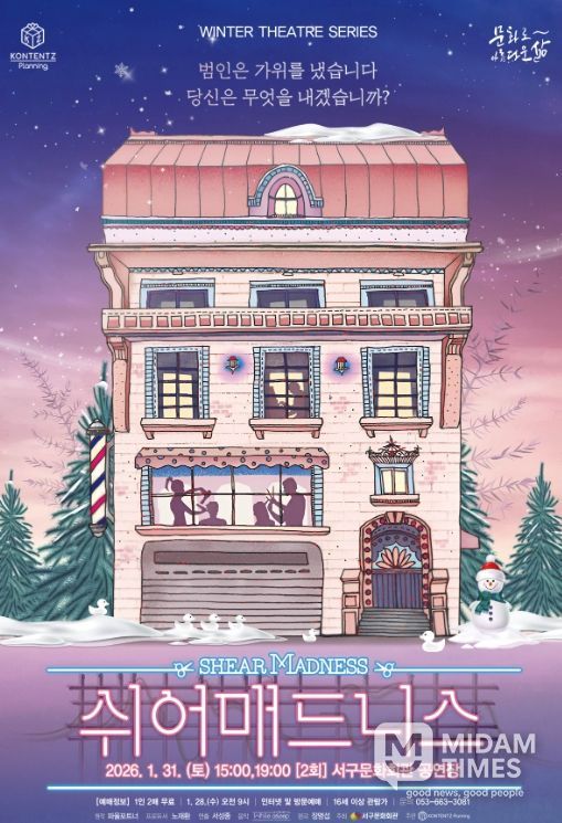 미담타임스 김교환 기자 | 서구문화회관은‘Winter Theatre Seires(겨울 연극 시리즈)’의 첫 번째 순서로 연극'쉬어매드니스'를 1월 31일 오후 3시, 7시 (2회) 무대에 올린다.