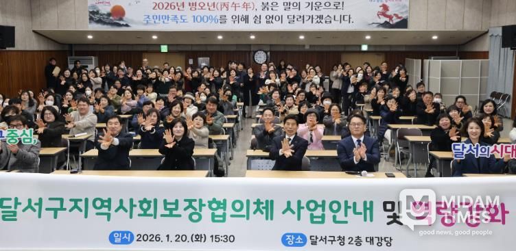 미담타임스 김교환 기자 | 대구 달서구는 20일 달서구청에서 달서구지역사회보장협의체 위원 200여 명을 대상으로 '2026년 달서구지역사회보장협의체 사업안내 및 역량강화 교육'을 실시했다.