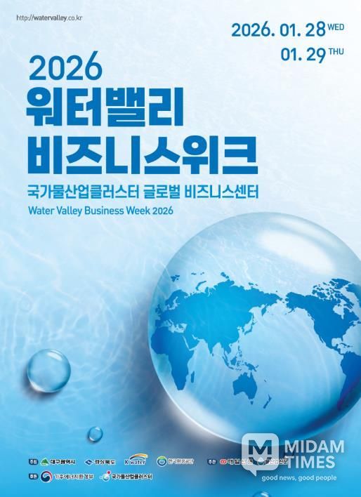 미담타임스 김교환 기자 | 대구광역시는 물 기업과 물 관련 공공기관이 함께하는 ‘2026 워터밸리 비즈니스 위크’를 1월 28일부터 29일까지 이틀간 대한민국 물산업의 메카, 국가물산업클러스터 글로벌비즈니스센터에서 개최한다.