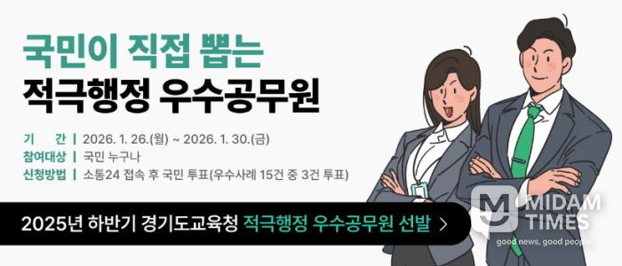 미담타임스 정주환 기자 | 경기도교육청이 공공의 이익을 높인 적극행정 우수공무원 선정을 위해 2025년도 하반기 대국민 심사를 실시한다.