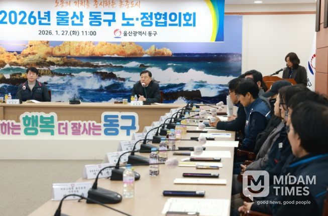 미담타임스 김준완 기자 | 울산 동구는 1월 27일 오전 11시 동구청 상황실에서 지역 노동계와 함께하는 ‘2026년 노정협의회’를 개최했다. 이번 회의는 새해 구정 운영 방향을 공유하고 노동 분야 주요 정책을 설명하며, 노정 간 소통과 협력을 강화하기 위해 마련됐다.