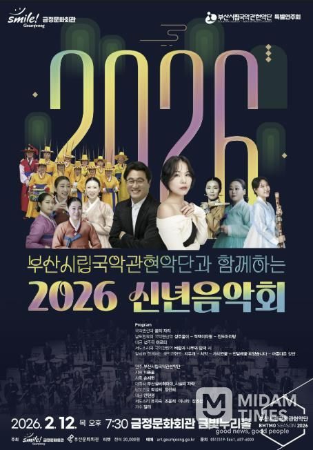 미담타임스 김교환 기자 | 금정문화회관에서는 2월 12일 오후 7시 30분, 금빛누리홀에서 부산시립국악관현악단과 함께하는 '2026 신년음악회’가 개최된다.