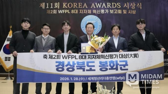 미담타임스 김준완 기자 | 봉화군이 세계청년리더총연맹(WFPL) 부설 지자체혁신평가위원회(GEC)가 주관한 ‘제2회 WFPL 8대 지자체 혁신평가’에서 기관 부문 최고 영예인 ‘대상(大賞)’을 수상했다.