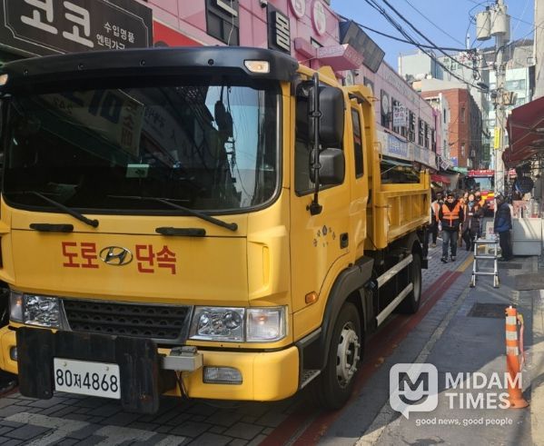 이날 합동 훈련반은 소방차 진입을 방해하는 소방출동로 상의 노점상 좌판 및 차양막 등 적치물 정비 및 계도 활동을 중점적으로 펼쳤다. 아울러 실제 화재 상황을 대비해 상인들에게 신속한 진입로 확보를 위한 자발적인 협조를 당부했다.