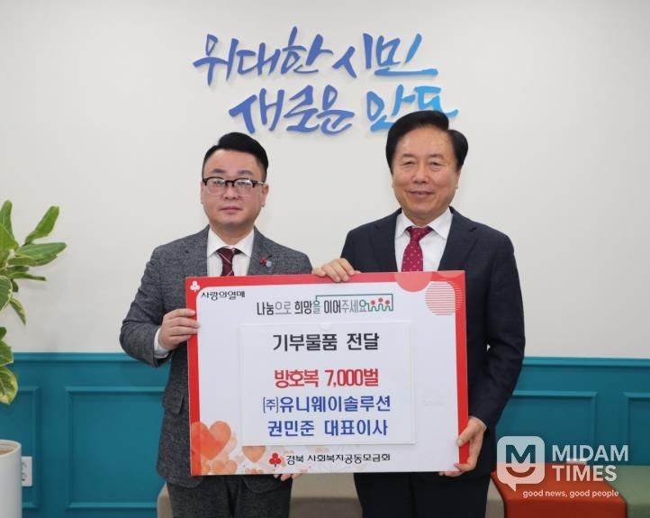 권기창 안동시장은 “경기가 어려운 시기임에도 불구하고 이웃 도시 안동을 위해 나눔을 실천해 주신 권민준 대표님께 깊이 감사드린다”며 “기탁해 주신 방호복은 지역사회를 위해 땀 흘리는 봉사자들의 ‘안전 갑옷’이 될 것”이라고 전했다.
