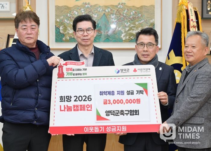 미담타임스 김준완 기자 | 영덕군 지역사회가 ‘희망2026 나눔 캠페인’에 통해 이웃사랑을 실천과 나눔문화 확산에 적극 나서고 있다.