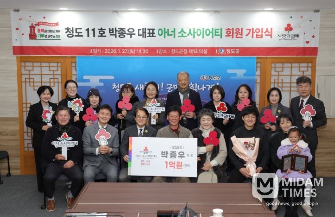 미담타임스 김준완 기자 | 강산농장 박종우 대표는 지난 27일 청도군청에서 아너 소사이어티 회원 가입식을 가졌다.