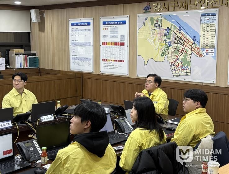 미담타임스 정주환 기자 | 진교훈 서울 강서구청장이 1일 밤부터 2일 새벽 사이에 서울 전역에 많은 눈이 내릴 것이 예보됨에 따라 구 제설대책본부를 찾아 제설대응 체계를 점검했다.