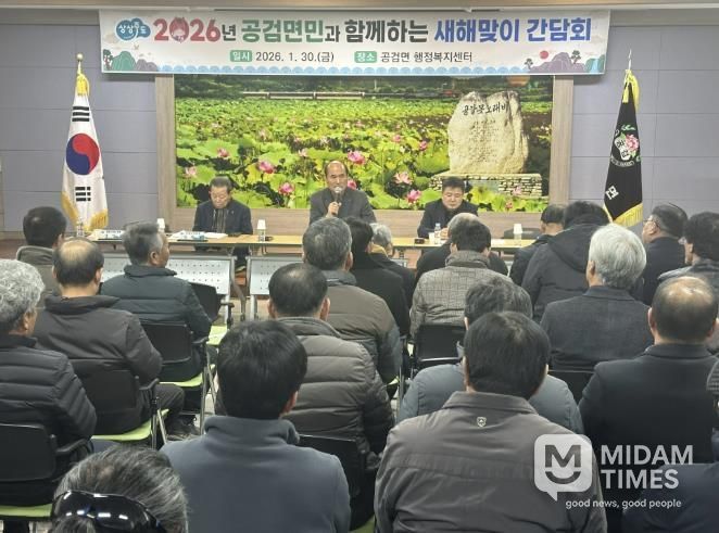 미담타임스 김준완 기자 | 상주시 공검면은 1월 30일 공검면 행정복지센터 회의실에서 기관·단체장과 이장 등 70여 명이 참석한 가운데 새해맞이 간담회를 개최했다.