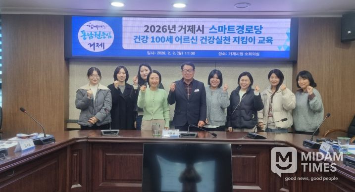 미담타임스 김교환 기자 | 거제시는 2021년부터 성공적으로 추진해 온 스마트경로당 사업의 일환으로, ‘2026년 건강 100세 어르신 건강실천 지킴이’8명을 2월 2일 참여자 교육을 시작으로 관내 9개면 215개 경로당에 본격 투입한다고 밝혔다.