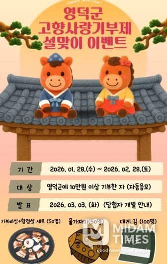 미담타임스 김준완 기자 | 영덕군이 다가오는 설 명절을 맞아 고향사랑기부제 참여자들을 위한 특별감사 이벤트를 진행한다.